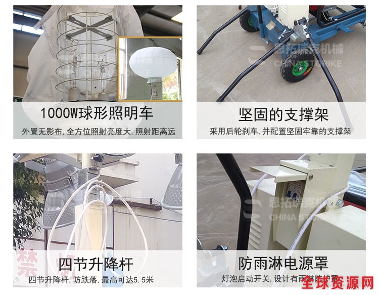 移动升降照明车 手推拖车照明车 金卤灯灯泡射程远球形照明车